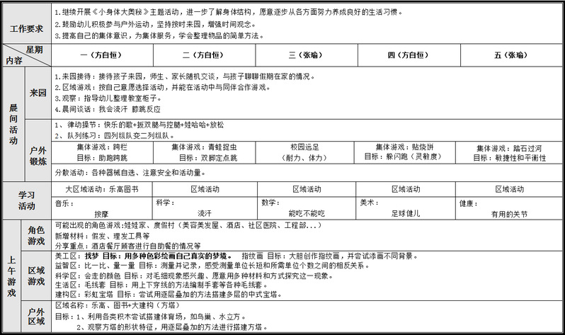 班 级:大二班 日 期:3月17日——3月21日 带班老师: 张瑜 方自恒
