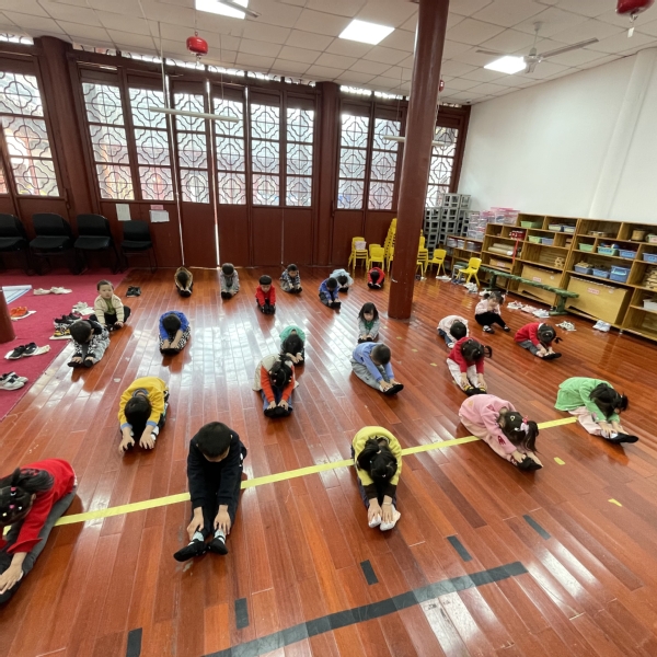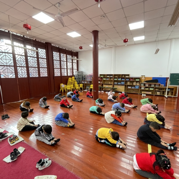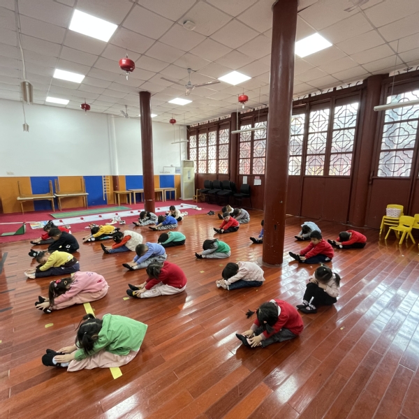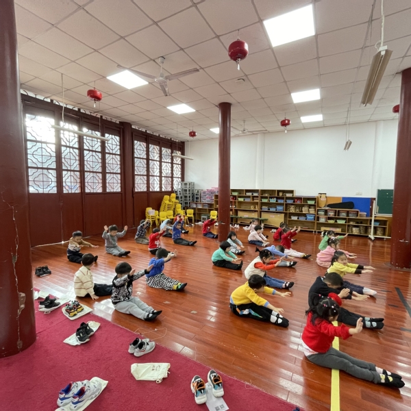 今天是我们练体操的日子,今天我们和老师一起练习了基本功。