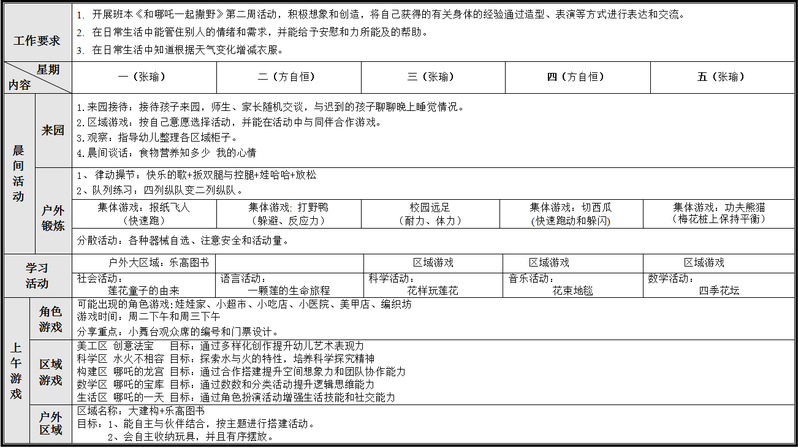 班 级:大二班 日 期:4月7日——4月11日 带班老师: 张瑜 方自恒