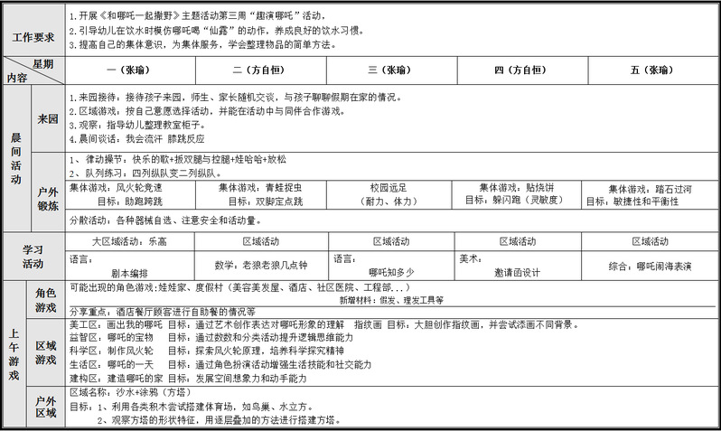 班 级:大二班 日 期:4月14日——4月18日 带班老师: 张瑜 方自恒