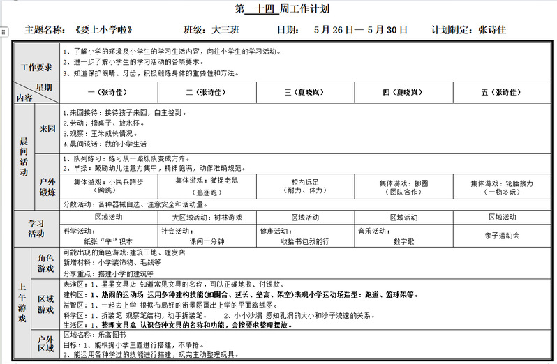 第十四周周计划