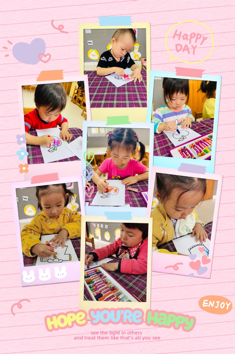 瞧!我们还会拿起蜡笔涂涂画画,学到本领真开心!