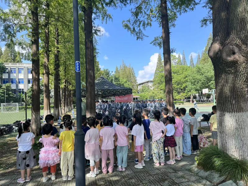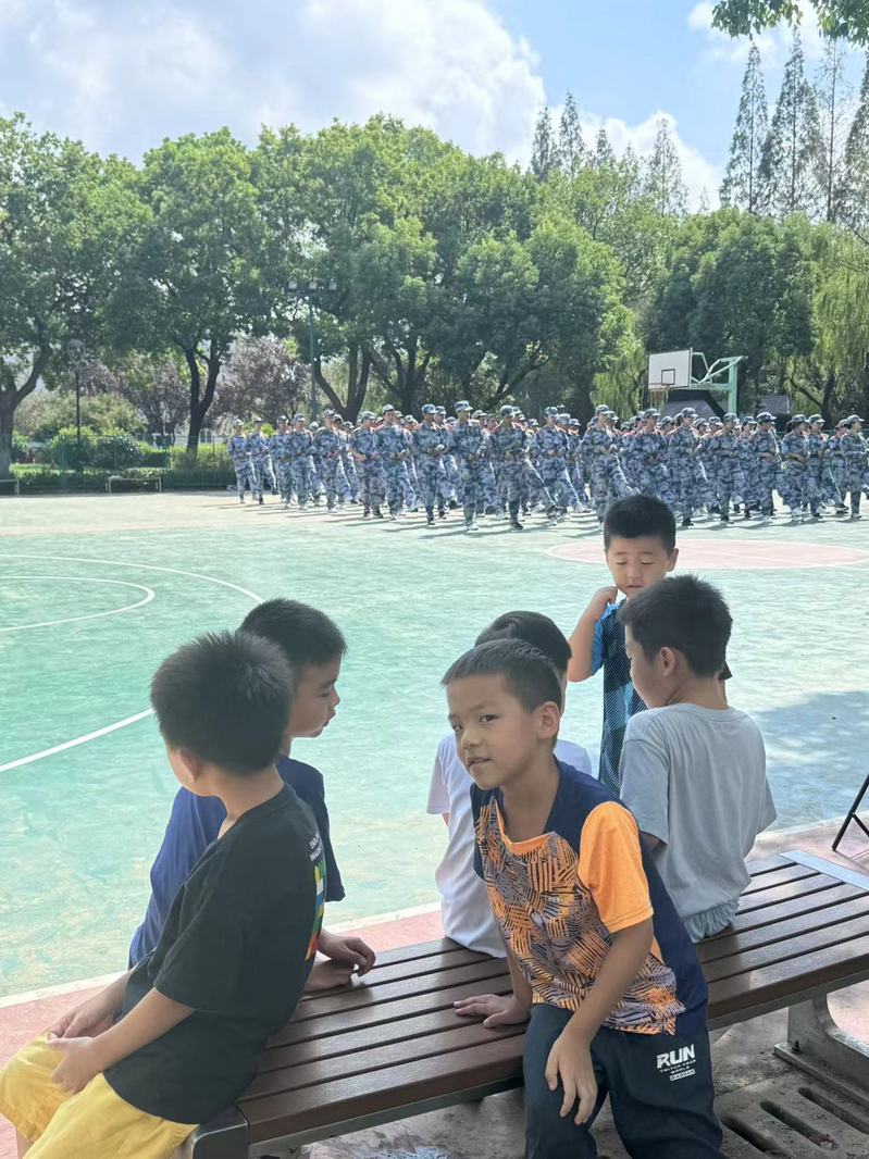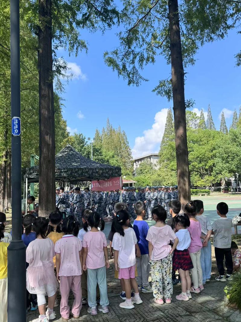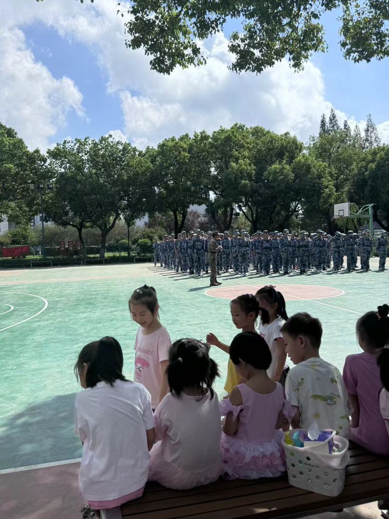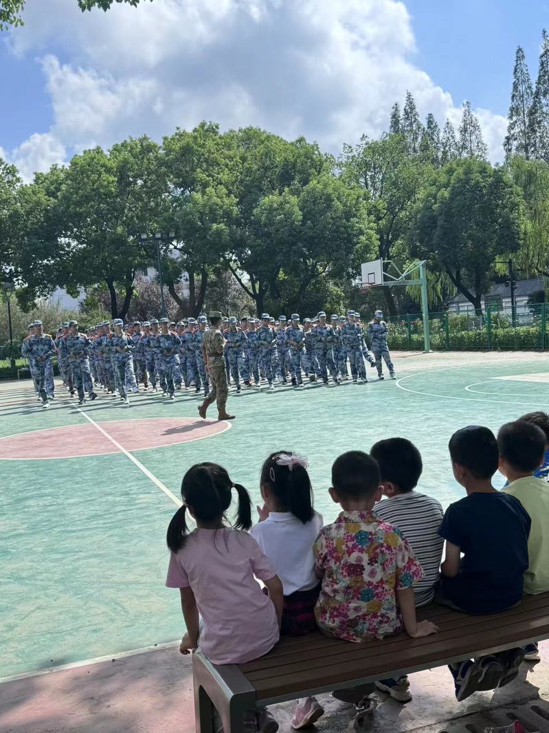 我们开学了,大班哥哥姐姐也开学啦,一起去看哥哥姐姐军训吧!真神气呀!