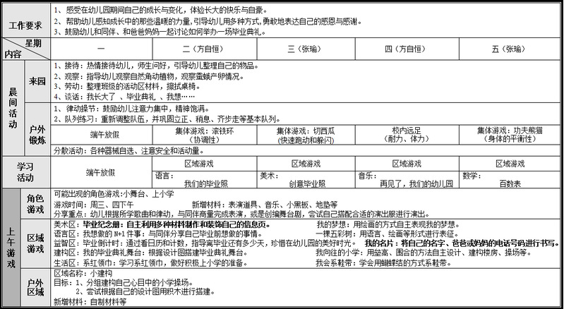 班 级:大二班 日 期:6月2日——6月6日 带班老师: 张瑜 方自恒