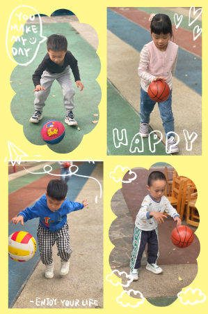 小班幼儿拍球活动,是我园的传统运动项目。旨在开展户外活动的同时,锻炼幼儿手眼动作的协调性,促进幼儿身体的健康发展。在练习过程中,幼儿利用滚球、抛球等动作感知了皮球的特性。利用拍球锻炼幼儿的体质一直是我园的体育教学特色,拍球能促使手、眼动作的协调,以及动作的敏捷性和节奏感,拍球反弹时的不同方位和时间能增进幼儿辨别方位的能力,拍球还能锻炼幼儿的耐力,增强幼儿的体质。