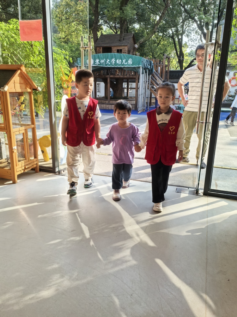 我们作为大班的哥哥姐姐,要站在门口带弟弟妹妹找到他们的班级,快来看看我们怎么做小小志愿者的吧!