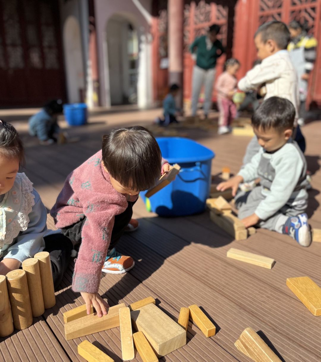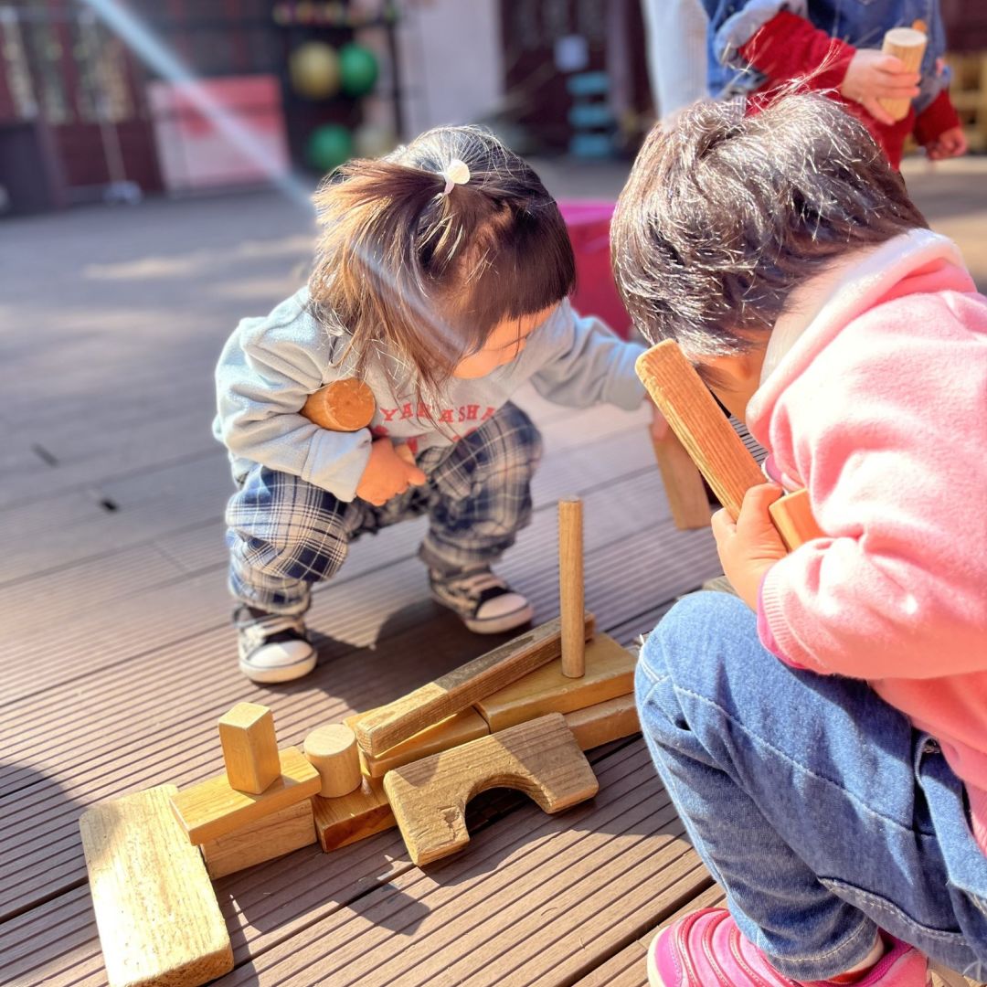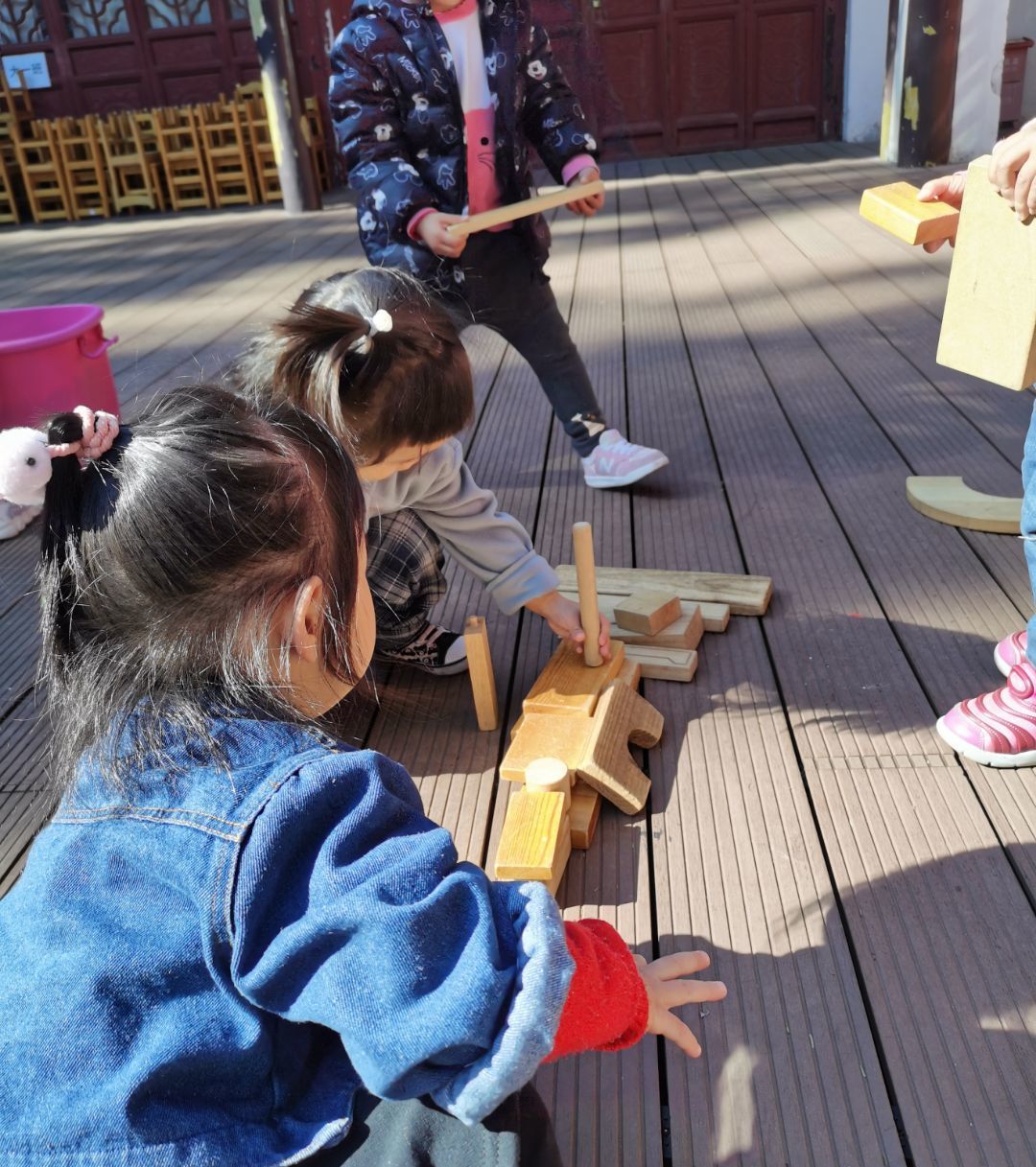 别看我们年龄小,搭起积木还是很厉害的呢,有的说:“老师你看我搭的小桥好看吗?”有的说:“老师我搭了一个大楼房……”