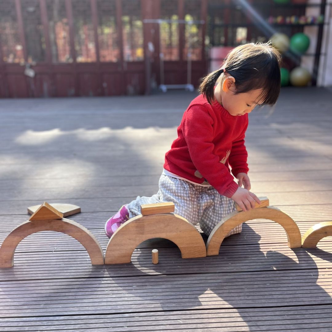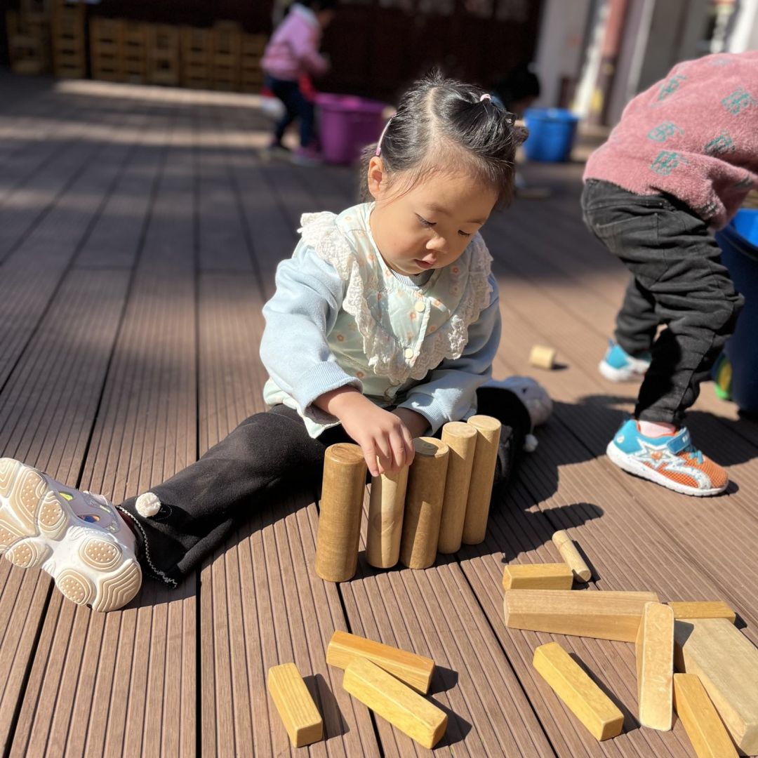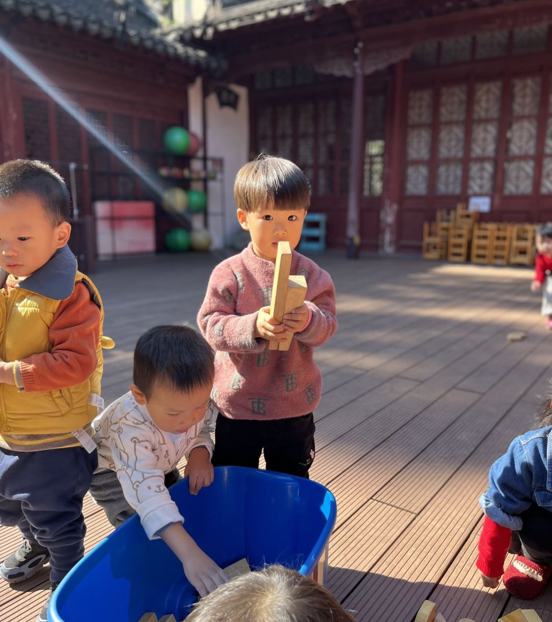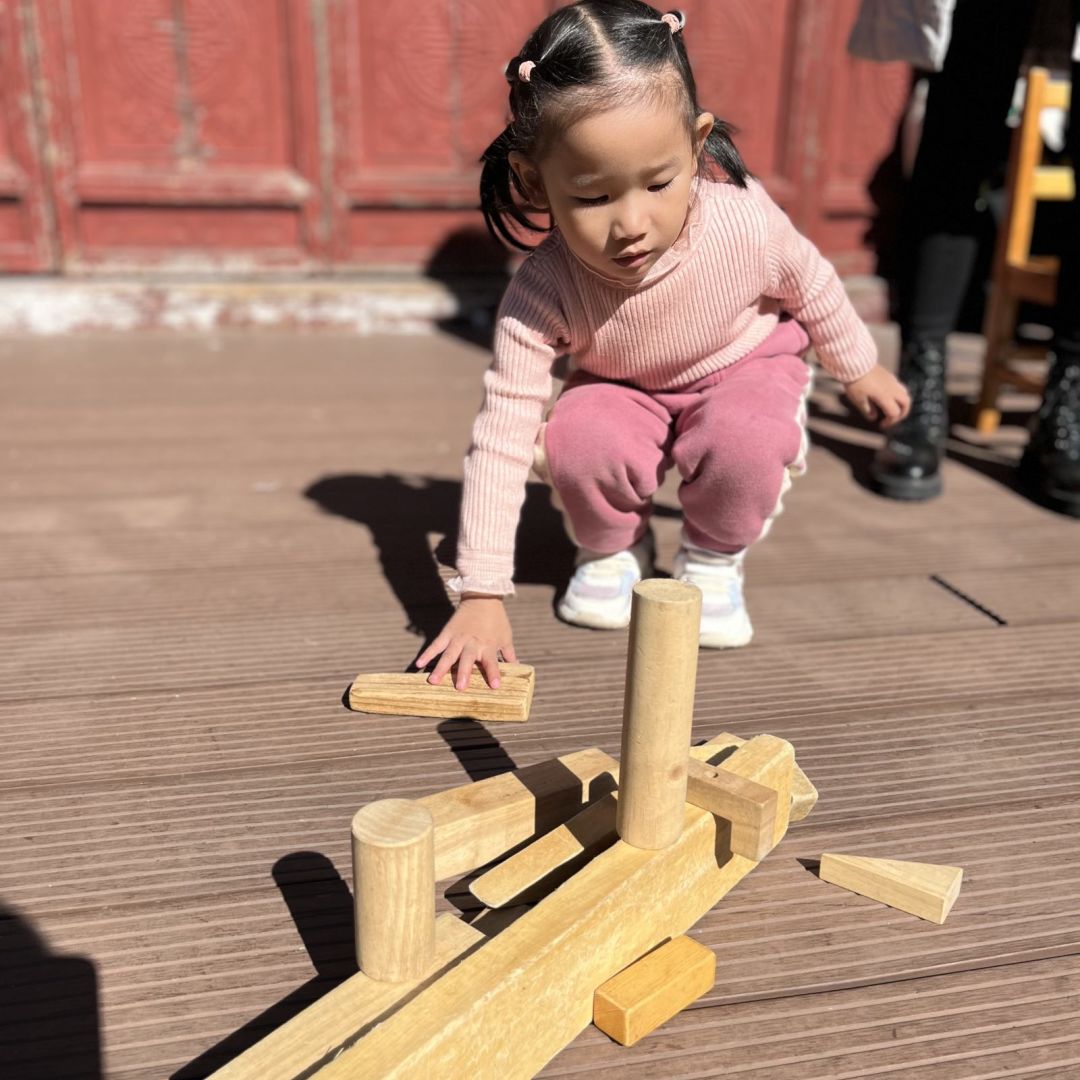 别看我们年龄小,搭起积木还是很厉害的呢,有的说:“老师你看我搭的小桥好看吗?”有的说:“老师我搭了一个大楼房……”