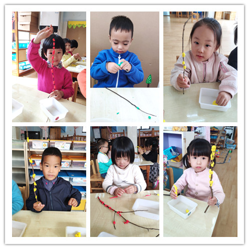 把粘土揉成团,再粘到树枝上,很简单,但是需要小朋友的细心和耐心!