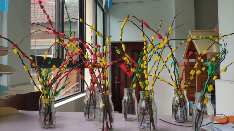 快来看看,我们把树枝插在花瓶里,是不是很好看呢!