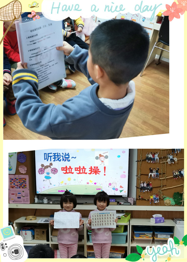 我们的课题是——啦啦操!在进行这个正式的课题之前,我们请小朋友先了解一下啦啦操的起源和相关的背景知识。