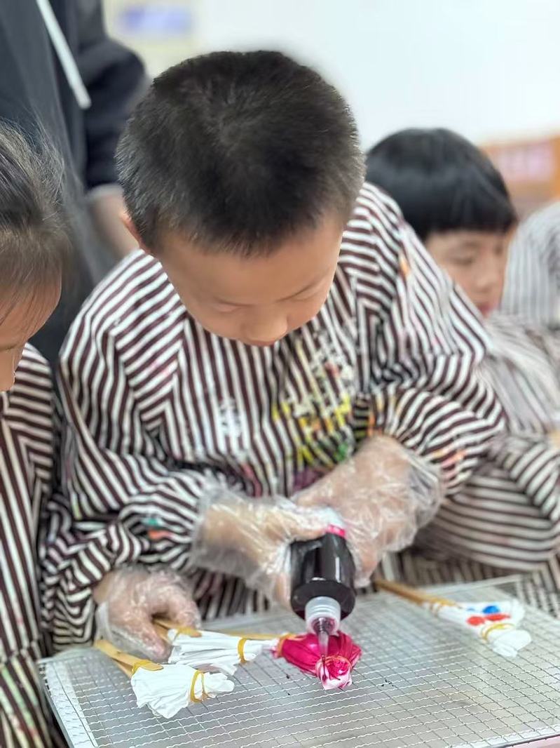 这周,大学生哥哥姐姐带我们来一起做扎染,我们了解到了扎染的艺术,看到了不同的扎染的花纹,学到了怎么进行扎染,最后我们还一起动手扎染,快来看看吧。