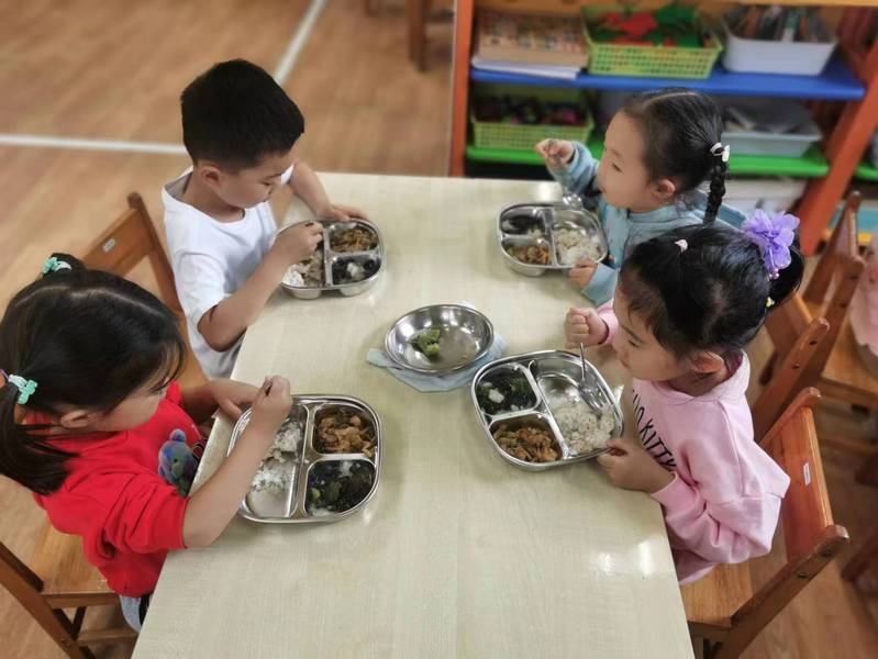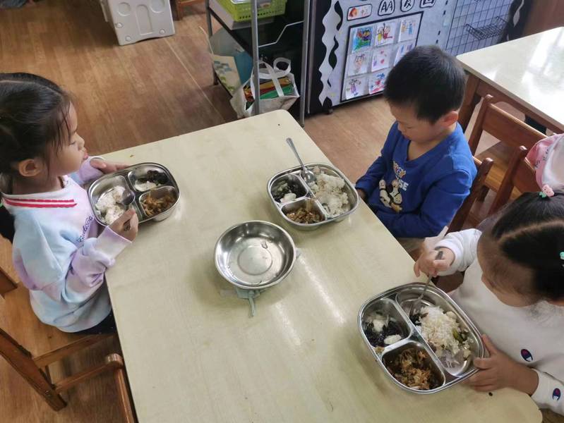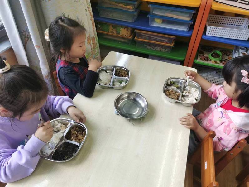 这一周我们换了新餐盘,有三格,上面还有笑脸。