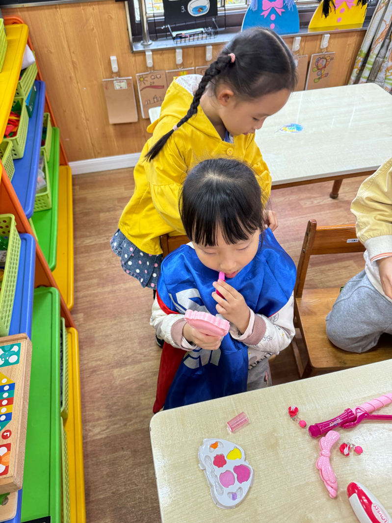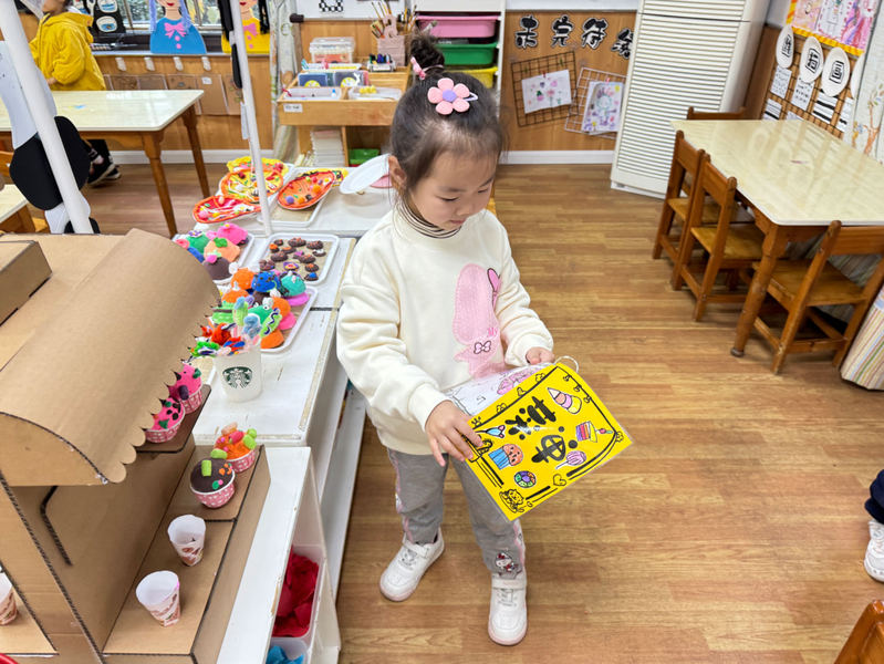 今天我们玩角色游戏,宝贝们都非常喜欢玩角色游戏,有的人选择去甜品店上班,有的宝贝选择了理发店上班,有的选择了小医院,小客人们络绎不绝,可热闹了!