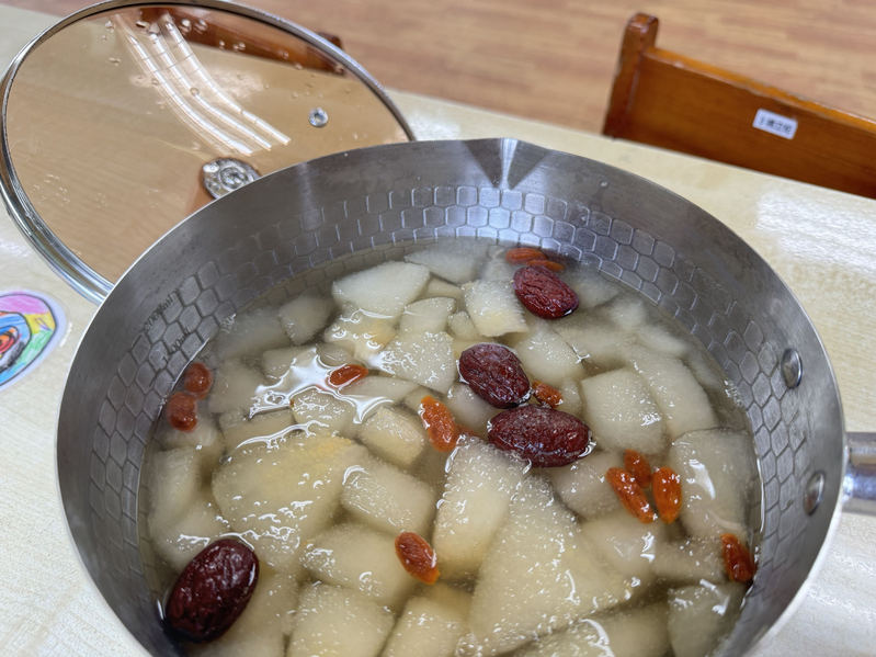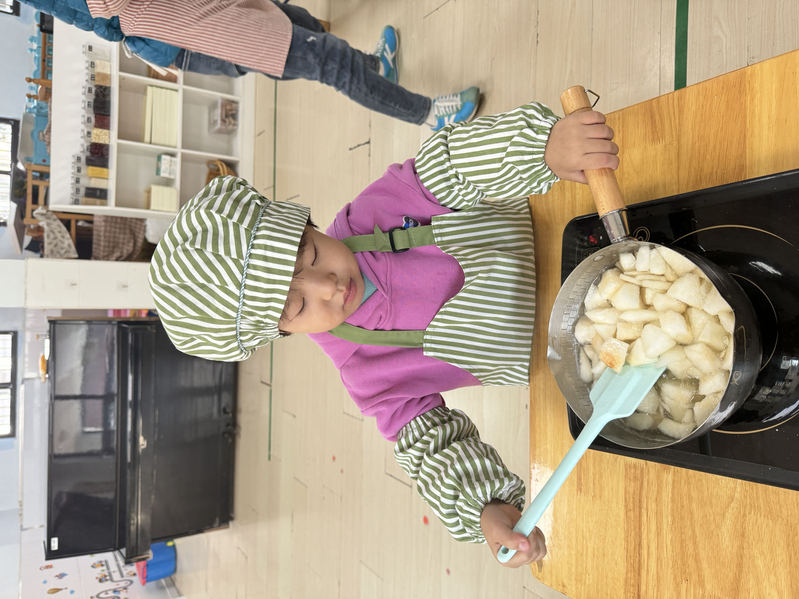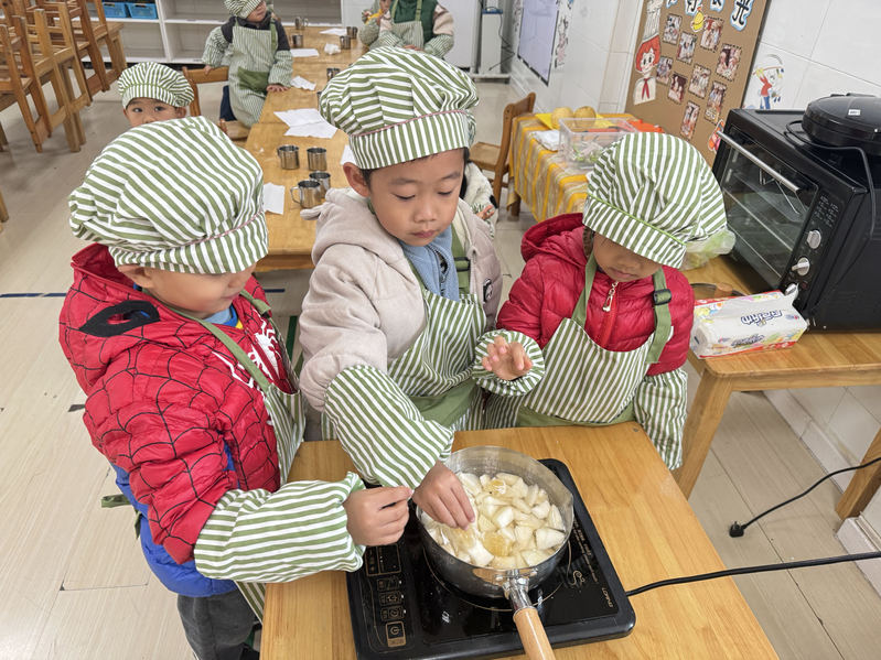 这周轮到我们去做冰糖炖梨啦,宝贝们一起切梨、放冰糖、做小帮厨,黄冰糖不会太甜,散发着淡淡的甜香味,梨炖的很软烂很好吃,大家一起动手做的冰糖炖梨实在太美味了,都吃光光啦!冰糖炖梨还能止咳润肺化痰,最近大降温,宝贝们咳嗽的比较多,爸爸妈妈回家也可以和小朋友一起动手做一做哦~