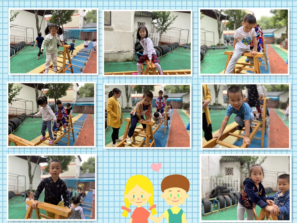 轮胎木梯我不怕,保持平衡往前看!现在我们可以稳稳地走在空中咯!