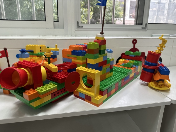 孩子们分享着:有大船、军舰、房屋、汽车、滑梯......
